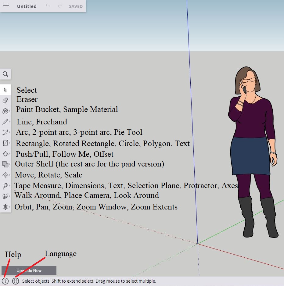 This course was taught using the free version of sketchup exclusively. That made it easier because the paid version UI is somewhat different from the free version. Since I was already bouncing between two different programs, I didn’t think adding a third would benefit anyone. So as usual, let’s get started with our recap.