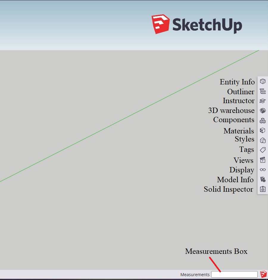 Lastly at the bottom we have our ever useful measurements box, we interacted with that guy a lot when we were modeling so you should be very familiar with how that works and how you can type in whatever dimension you want when you’re modeling.