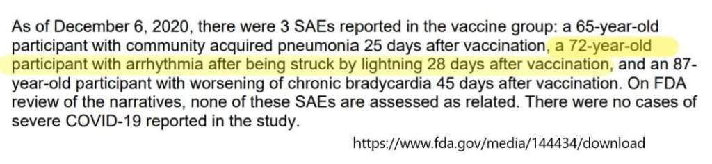 There were a few unexpected side effects though that should be talked about. First the lightning. Now I’m stuck carrying around a lighting rod for a few weeks before my booster shot and they really don’t cover that. I’m surprised they didn’t give more of a warning. For those confused, this is a real FDA adverse events disclosure (see below or read it directly from here). To be fair it’s the moderna vaccine, I got the pfizer vaccine so now I can control the lightning, but it takes a few weeks to learn properly hence the lighting rod. I highly recommend the pfizer vaccine for that reason. If you’re not a fan of lightning, then I recommend the moderna vaccine, you still have to deal with the lightning strikes, but that’s temporary. I hear you get power over water from the moderna vaccine. I prefer the lightning, but hey everyone has their own thing, who am I to judge?