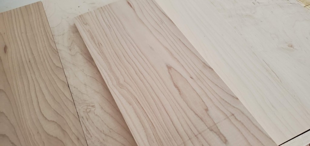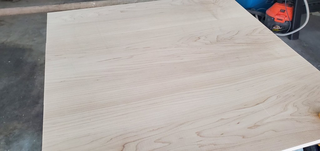 Since wood doesn’t naturally come this size (or if it does it’s at a cost) we glue smaller pieces together to form a sheet. This is not to be confused with plywood, which comes in sheets but is not solid wood. Once you glue the pieces together and sand them the only real way to tell them apart is to look for the grain mismatch, which I tried to minimize. This piece will be cut into two and used for the doors for my vanity.