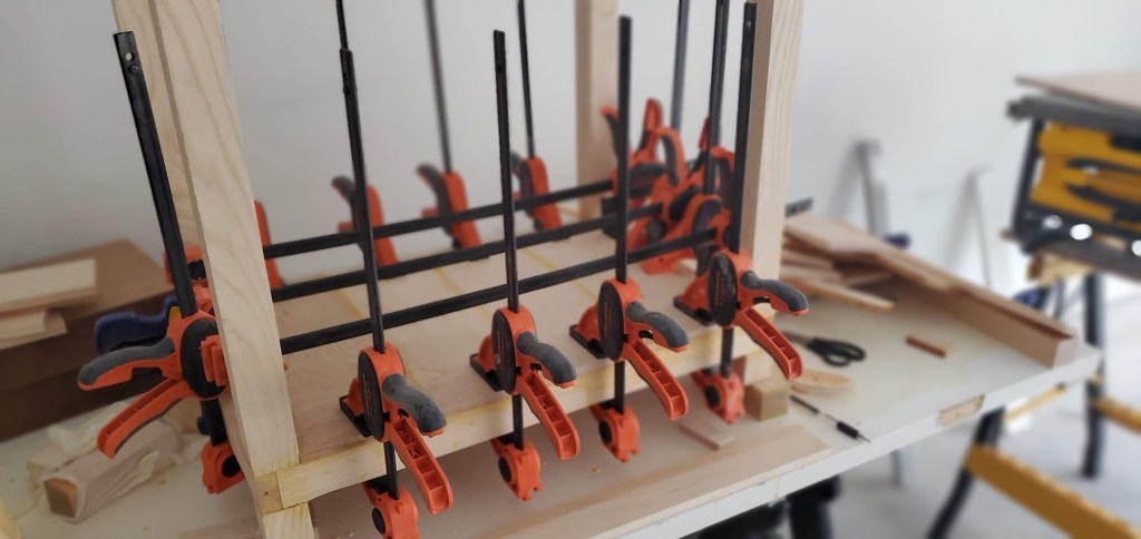 I’m slow at woodworking. Probably because I’m new(ish) to it and because I like to take my time and think through what I’m going to do before I do it. At this stage though, I’m limited to the progress I can make based on the number of clamps I have and the amount of time it takes for the glue to dry. That doesn’t mean nothing has been done since I last posted a few days ago though, in fact I’ve made quite a bit of progress and I’m about to move on to the next steps.