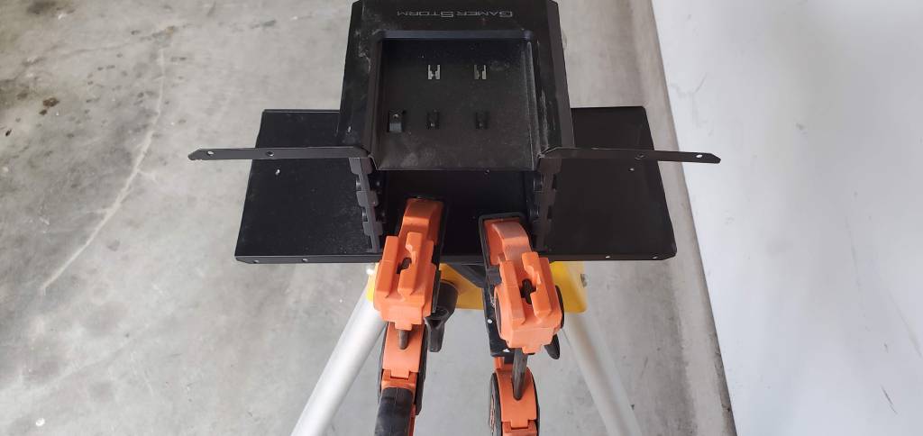 But the title of the post is extreme PC modding and we haven’t done anything particularly “extreme” yet. I did have that bracket modification, but that was nothing too crazy. So let’s get crazy. The big radiator runs the full length of my PC, but that means it will run into the storage rack that holds my hard drives (see below). I talked about this issue last post, it turns out no matter what size radiator I use (360 or 480mm) I cannot run the lines to the radiator without them being on the bottom. This means are could get trapped at the top of the radiator and would not easily be removed, so I want the lines at the top of the radiator so the air will get flushed out easier. Which means we need to do some modifying, namely we need to cut some of the frame for storage to make room. Now all I really need to do is cut one section (top in the photo below) then everything will fit.