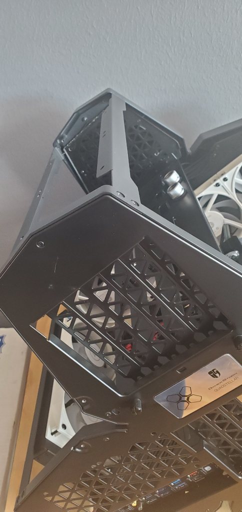 For a case that wasn’t designed for a 480mm radiator, it sure fits well! It will give the case a more balanced look and adds more radiator and you gotta have more radiator. So one radiator in, time to get the second one in place. You can see what I mean about dust, this is how the computer sits normally, so it would be very close to the table it sits on. Frankly, push, pull, it doesn’t matter the work done is the same so I’m good with the way I am doing this. You COULD do a push/pull with fans on both sides of the radiator, but one that’s silly, two that makes everything super thick even with a very thin radiator like the two I’m using here. I mean you can do it, people do in fact do it, but it feels a bit like overkill for minimal benefit. The real benefit is noise from the fans, not significant heat improvement.