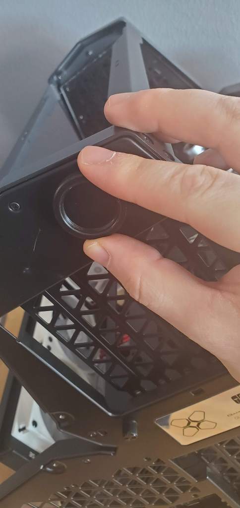 That’s right, we’re not done modding just yet. When you have a custom watercooling loop you need to think about how you’re going to do two things, drain the loop, and refill the loop. I will add a drain plug later, when I start bending the hard tubing, that doesn’t need any sort of case mod to do. The fill plug on the other hand does (or can I guess, it’s not a must). Since I’m going through the effort, I figure adding a fill plug will make my life easier in the long run when I will need to drain and fill the loop. You need to change the fluid every 6-12 months (depending on how lazy you want to be, how much you trust the fluid to not clump, and the type of fluid you’re using).