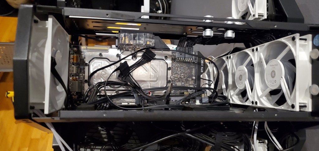 I was having overheating problems. It sucks, but what’s worse is this is the second time this has happened in two years. To solve the problem, I am installing a custom watercooling loop into the PC to make sure everything runs cool and I can just flush the fluid and change it out regularly instead of ripping out a new AIO (all-in-one) watercooler every time it clogs… and boy how they have been clogging! You can read about the latest overheating issues here. So I planned the build (here), and last weekend I started the build (day one here) (day two here).