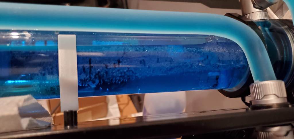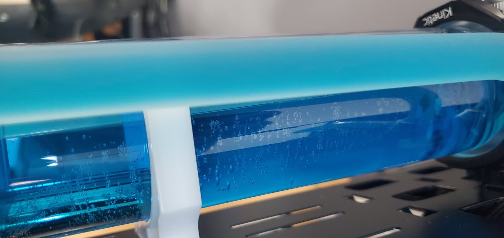 This was a process, mostly because there is air in the system and it needs a little help to work its way out. By that I mean physically jiggling the case and (gently) banging it to free the bubbles. It was also nerve-wracking to do since even with the covers off the case easily weighs more than my cat when she doesn’t want me to pick her up. If you own a cat you know what I’m talking about.