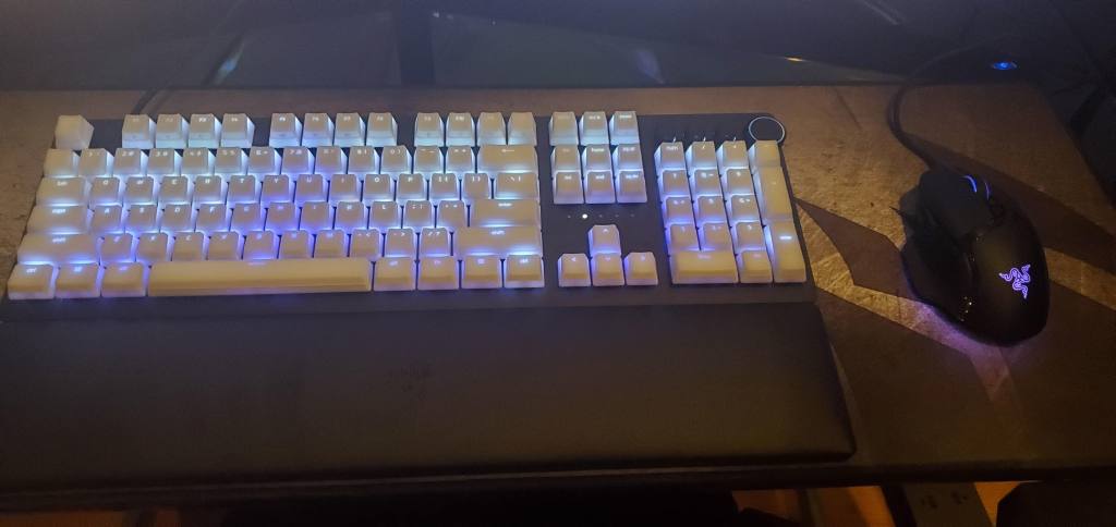 Since I went with white fans in the computer, I decided to get a white keyboard, but I couldn’t get the one I wanted in white! So instead I spent a few extra dollars and got a keycap set that were white and super cool. Of course, I had to install them myself. Let’s just say it took forever! The instructions didn’t give me much to go off of and I couldn’t figure out the order, but once I did life was easy. Afterwards I noticed the packages were stamped 1,2,3,4 so that would’ve saved me time, but hindsight is 20/20. They organize their keys going left from right, top to bottom with one exception the + and enter on the number pad. So once I figured that out it was cake. It still took upwards of an hour to get it all done, but it could’ve been worse had I not figured out the order.