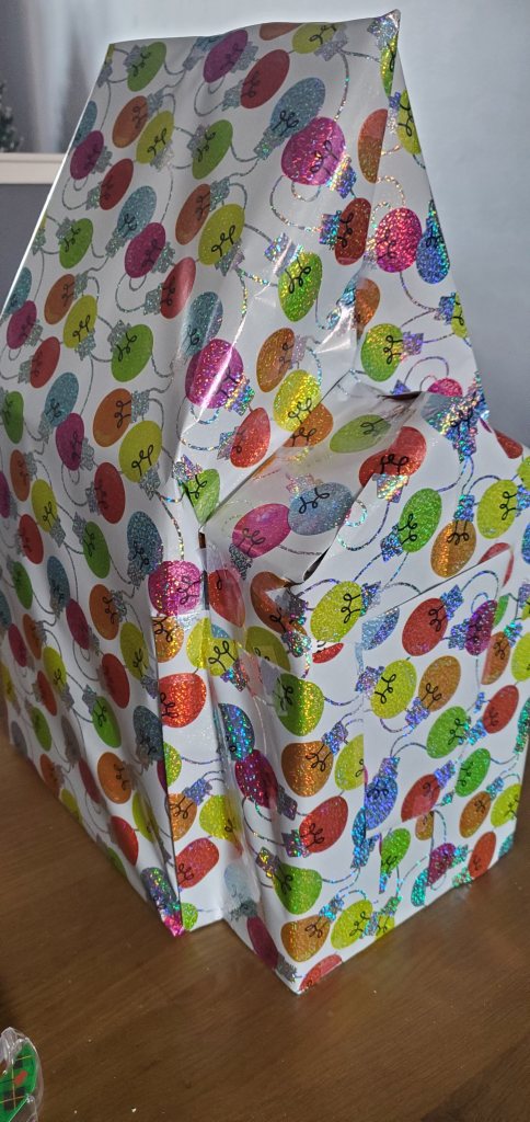 The best part is that I’m going to be really screwing with the person getting this because I also have a second gift. The second gift is wrapped very normally and very well. The trick with that one is that it’s tiny, so think box, inside box, inside box… etc. I’m hoping to leave them very confused up until the big reveal.