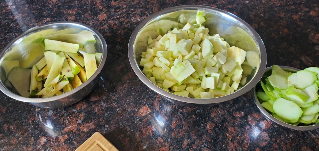 - Peel, core, and dice apples