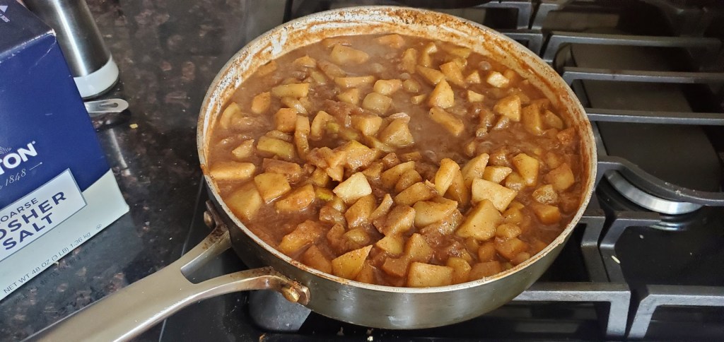 In the photo above everything looks well incorporated and the sauce looks, well saucy, but once it chills the sugar will fall out of suspension because I didn’t cook it long enough. You’ll see what I mean when I add the photo of the filling step. So again, cook until you have a caramel colored thick sauce, if it’s too thin you’ll end up with a mess when we get to the filling step, so the thicker the better as long as it’s not a rock when it comes time to use. Notice the apples are still in chunk form, granny smith apples are the best for this purpose so I would highly recommend you avoid other apples. Just don’t do it, no one wants to put all that effort into this only to end up with applesauce.