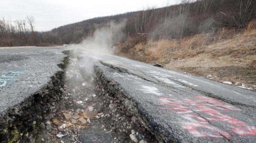 Make no mistake though, the fire is burning to this day and there are steam vents throughout the borough giving off gases from the fire. Coupled with unstable ground (i.e. sinkholes), the dangerous levels of carbon monoxide, and the literally hot ground, we can estimate very roughly the fires size, but there’s nothing that can be done to extinguish the blaze.