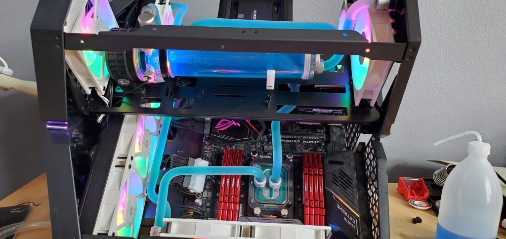 With fancy computer equipment comes annoying computer maintenance. Today has been a challenge! Thankfully finished, mostly. It’s been roughly six months since I took the plunge and built my own custom watercooling loop for my computer. Since today is the first flush, I figure I can tell the story and talk about how it went. Spoiler, it went both better and worse than I expected.