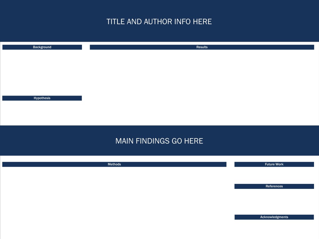 Which brings me to poster arrangements. I have my own special template that I like to use that has become semi-popular for posters where the main point of the paper, the BIG takeaway message is places literally center in big lettering. But why tell, when I can show. Here’s the stripped down (IE nothing added) version of my poster. I literally just deleted all the figures and text from my latest poster to make this.